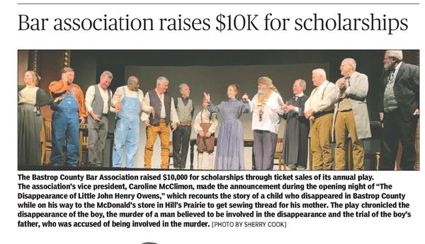 The Association was revitalized back in the early 2000s and has been growing in community involvement over the last decade. BCBA works to raise over $10,000 in scholarships for high school graduates from Bastrop County while also providing volunteers for legal clinics for indigent residents in our county.