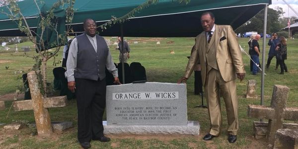 Improbable and inspiring, Wicks’ story is one worth celebrating. After spending nearly twenty years of his life in slavery, he moved to Bastrop county and established a life for himself around the year 1868. Within just a few years Wicks had met his future wife Anna and established himself as a school teacher. In a testament to his value to the community, Wicks was elected justice of the peace for Precinct 3 in 1888. Although at times controversial, the life of Orange Wicks is best characterized by his leadership and commitment to the Bastrop County community. The Bastrop County Bar Association recently held a scholarship fundraiser that included a performance reenacting parts of Wicks’ life. The success of that fundraiser has allowed the funding of numerous scholarships for local students, and the installment of missing tombstones at the grave site of Mr. and Mrs. Wicks.